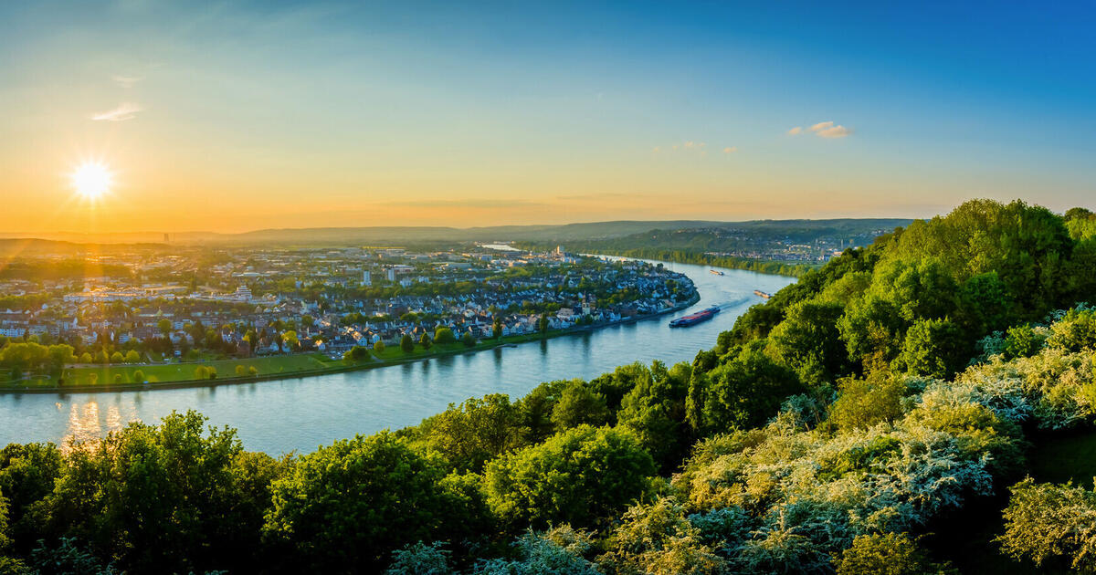 et à la confluence de la Moselle et du Rhin. Vous apercevrez le centre-ville historique de la ville ainsi que la statue "Die Deutsche Eck" représentant l’Empereur Guillaume 1er située au point de confluence entre
